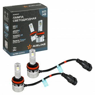 Лампа светодиодная H11/H8 ULTRA, 55Вт, 10400Лм (5200Лм x 2), 6500К (Белый), 12/24В, комплект 2 шт. МП-серия