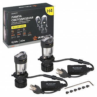 Лампа светодиодная H4 BI-LED LENS, 60Вт, 7000Лм (3500Лм x 2), 6500К (Белый), 12/24В, комплект 2 шт. МП-серия