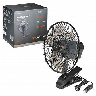 Вентилятор в салон 22см, 24В PRO, с автоповоротом, металл.корпус, прищепка