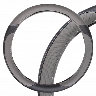 Оплетка на руль, искусственная кожа с перфорацией, серая/черная, 40 см / L
