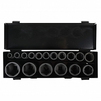 Набор головок ударных 1/2"DR L=38мм, 17пр. (10-36мм) металл.кейс.