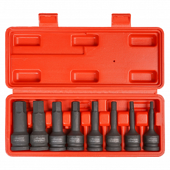 Набор головок ударных 1/2"DR L=78мм внешний шестигранник, 8пр. (5-19мм) пласт.кейс