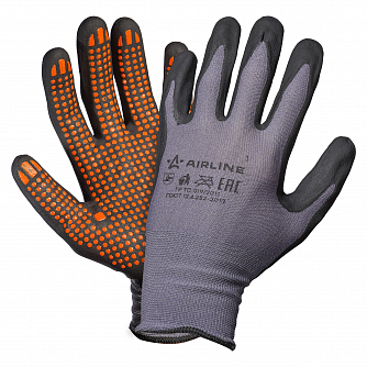 Перчатки нейлоновые с нитриловым покрытием ладони (XL) сер./черн./оранж., с подвесом