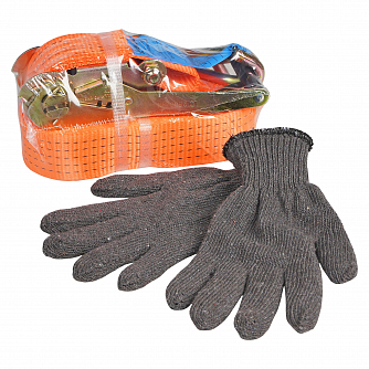 Набор Ремень стяжной+Перчатки (ремень крепления груза с храповиком 10т 10 м; перчатки ХБ серые)