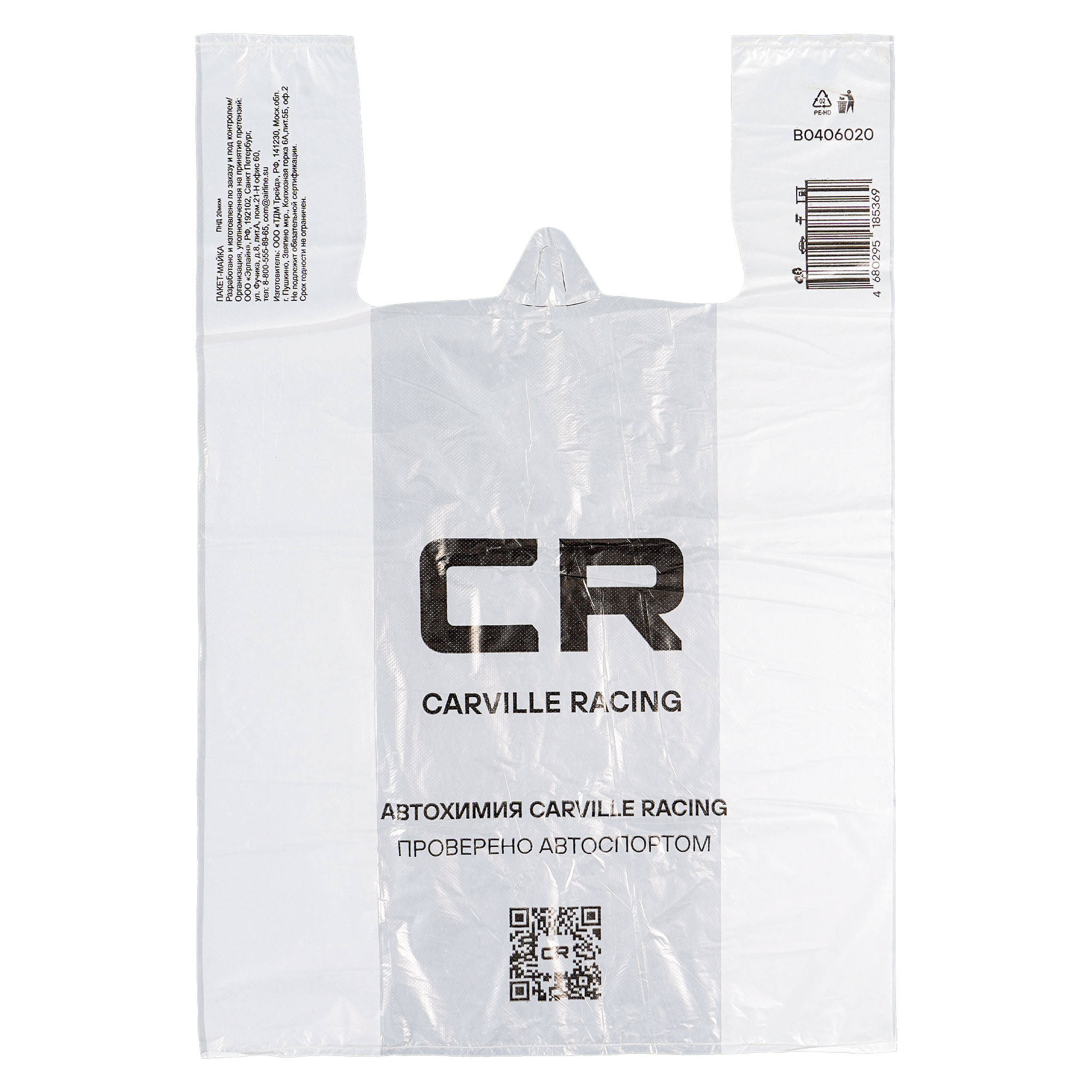Пакет-майка Carville Racing, ПНД 20 мкм (40*60+20 см), белый